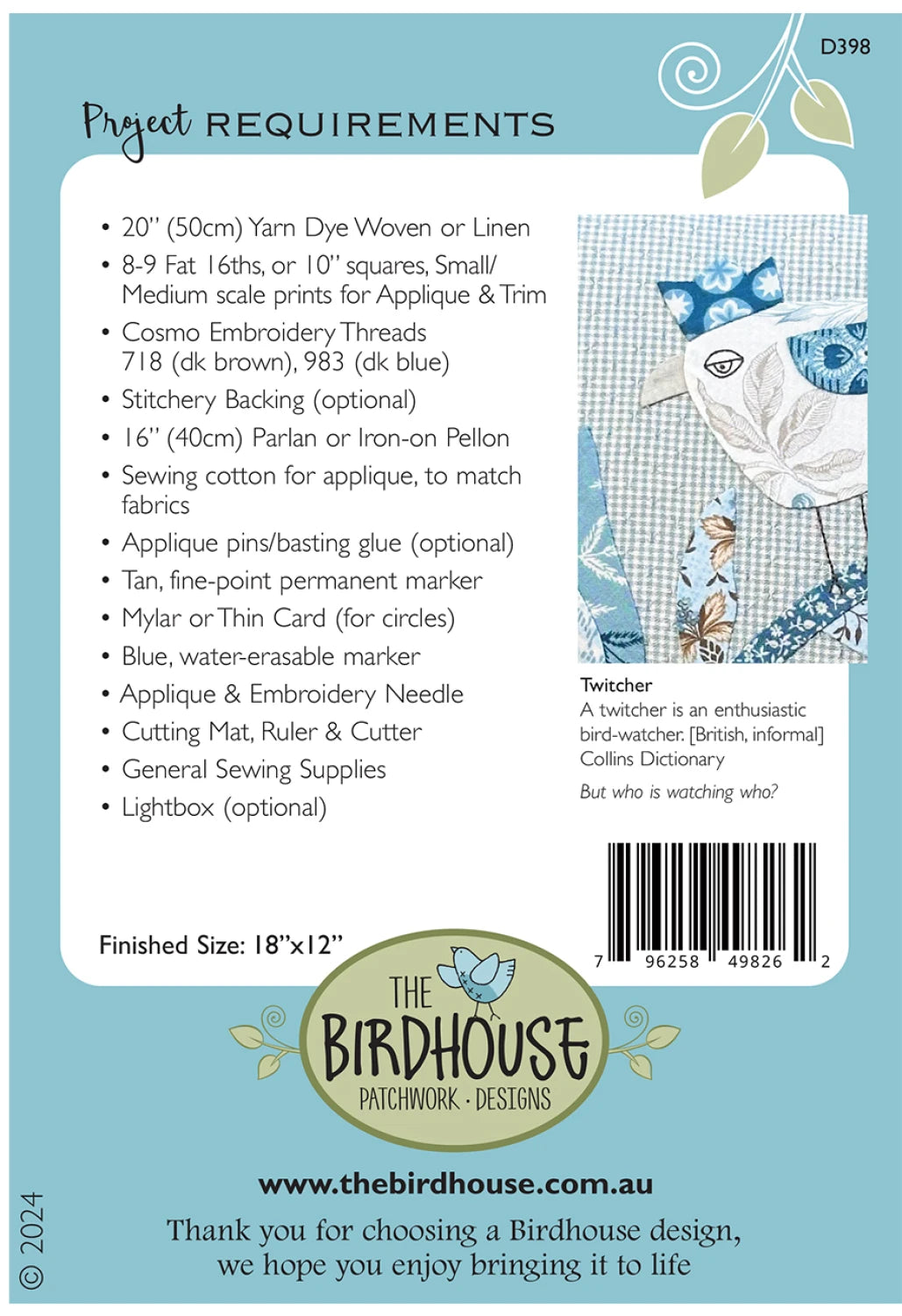 The Twitcher by Natalie Bird of Birdhouse Patchwork Designs
